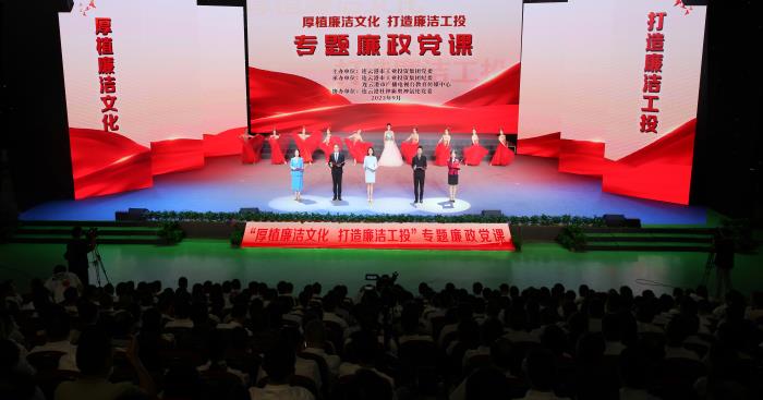 中秋、国庆两节将至,为进一步强化党风廉政建设,抓实抓牢节点教育,引导广大员工从红色文化、廉洁文化中受到教育和警醒,不断筑牢廉洁自律思想堤坝,持续绷紧纪律规矩弦,925日下午,集团党委举办厚植廉洁文化  打造廉洁工投专题廉政党课。市纪委监委有关部门领导,集团党委领导班子成员,各权属单位领导班子成员、财务、工程、资产、审计、购销等重点岗位人员、青年党员代表,集团总部管理人员,纳入教育整顿的全体纪检监察干部等500余人参加活动。