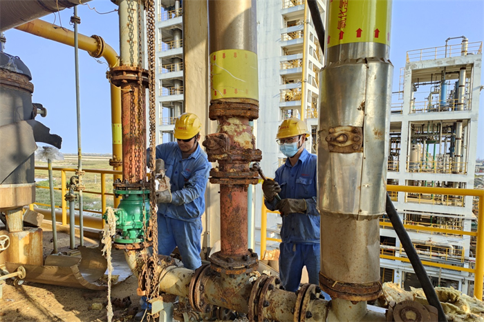 为了将隐患消除于萌芽状态,确保生产装置安全平稳运行,近日,维保人员在氯化苄一期装置停车期间,对关键部位的紧固件进行检查并对腐蚀的部位进行拆除更换。