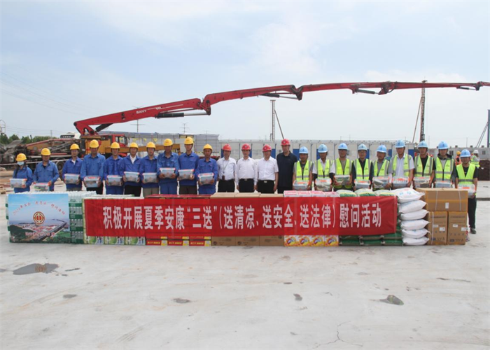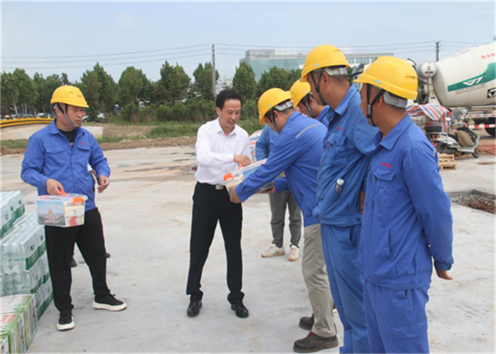 在项目工地现场,刘章程一边为大家送上清凉慰问品,一边关切的询问施工人员的工作和生活情况,叮嘱大家注意劳逸结合,科学安排工时、合理分配力量,在保证安全生产和工程进度的前提下,推动项目早日建成投用。(郁洪兵、王静静)