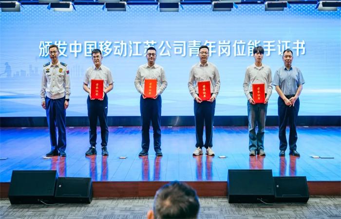 开发区消防救援大队、政治教导员谷立伟,中国移动连云港分公司党委委员、纪委书记付忠为中国移动江苏公司青年岗位能手颁奖。