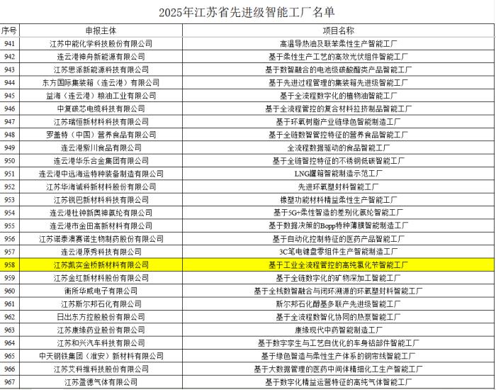 近日,江苏省工信厅网站公示了2025年度江苏省先进级智能工厂名单,我公司顺利凭借在智能制造领域的卓越表现成功入选,成功获评“基于工业全流程管控的高纯氯化芐智能工厂”称号。这一荣誉不仅意味着凯实金桥公司在“智改数转”的道路上又迈进了坚实的一步,更是实现生产经营数据互通共享、关键生产过程精准控制、生产与经营协同管控实现综合效能的提升。