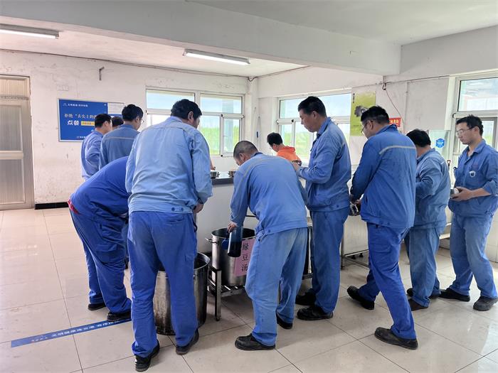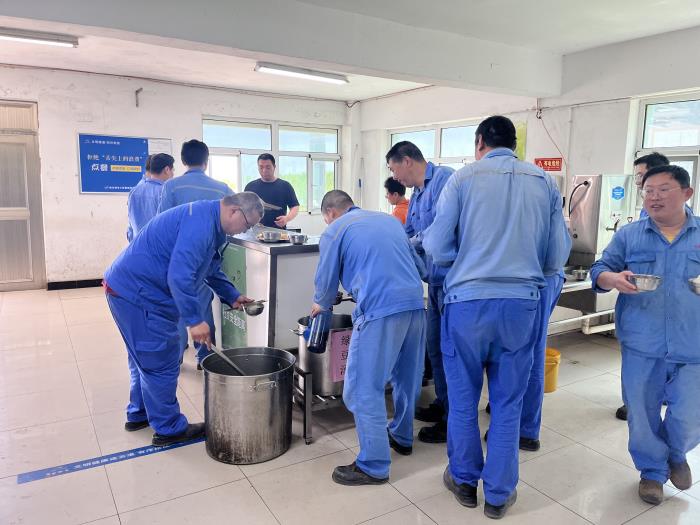入伏以来,气温不断攀升,利海公司为做好职工防暑降温工作,确保高温天气一线职工身心健康,每天在厂区食堂为一线员工送上清凉解暑的绿豆汤,午餐时为员工准备了水果、酸奶等,让不畏高温坚守一线的员工感受到公司的关怀,也为炎炎夏日带来一丝惬意、一丝清凉。(王静静)